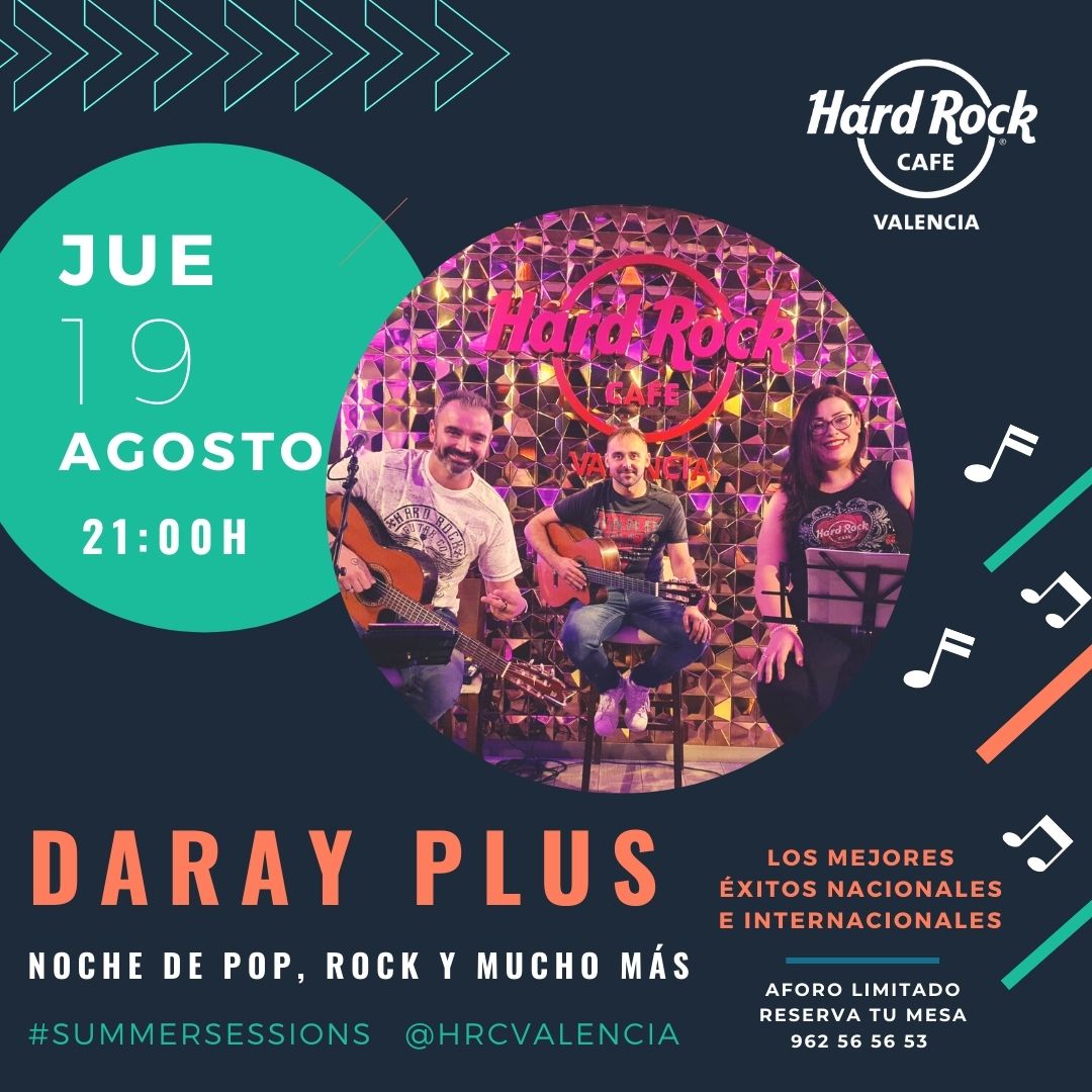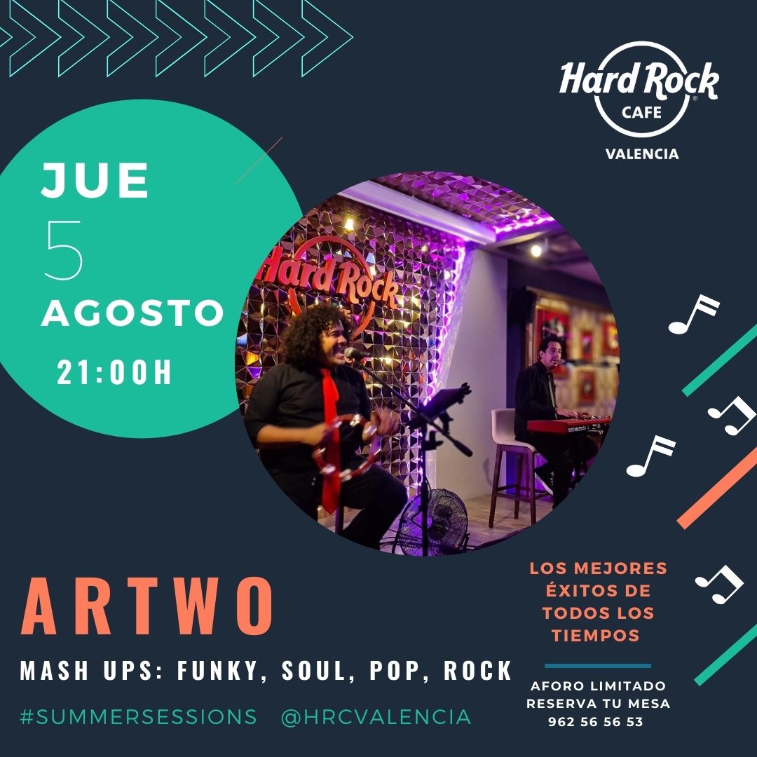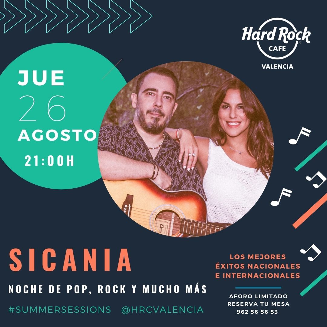 Summer sessions en Hard Rock Cafe Valencia Un planazo para este verano cena y concierto en directo en pleno centro de València ¿Cuándo? Fecha Del Thursday, 05 de August del 2021 al Thursday, 26 de August del 2021 HORA 21:00 h ¿Dónde? LUGAR Hard Rock Cafe Valencia Avenida Del Marqués de Sotelo 6 46002 Valencia Ver ficha ¡Vuelve la música en directo a Hard Rock Cafe Valencia! Este verano puedes disfrutar de las noches temáticas con tu cena de los jueves, la mejor manera para prepararte para el fin de semana. Un planazo para este verano en pleno centro de la ciudad. Consulta más eventos en la agenda de València. Cada jueves de agosto a partir de las 21:00h se suben al escenario de Hard Rock Cafe Valencia dúos o tríos acústicos con versiones de canciones conocidas de todos los tiempos. Con motivo del covid-19 el aforo será limitado. Par cenar será necesario reservar con antelación a través de whatsapp 747 860 910, llamando al 962 56 56 53 o por su página web. Programación Summer Sessions Jueves 5 de agosto – ARTWO – Noche de Funk, Pop, Rock Los mejores éxitos que todos conocemos versionados por el dúo Artwo con su toque especial, ¡te sorprenderán sus increíbles mezclas! Las últimas veces que estuvieron en nuestro escenario hicieron un SOLD OUT del aforo, así que no te pierdas esta actuación. Jueves 12 de agosto – THE RHYTHMICS – Noche de Soul, Blues, Pop, Rock Éxitos de Soul/Blues, Pop/Rock de todos los tiempos. Este incríble trío de voz, teclado y saxo, te dejará boquiabiertx. Jueves 19 de agosto – DARAY PLUS – Noche de Pop , Rock Empiezan y cierran los acústicos de los jueves! Los mejores éxitos nacionales e internacionales, interpretados por este impresionante trío acústico, con Charo Gimenez de LA VOZ , y Ray Sanchez y David Tormo finalistas de Duel de Veus de A Punt! Jueves 26 de agosto – SICANIA – Noche de Pop, Rock Por primera vez en nuestro escenario, el dúo acústico de Elena Valencia (voz) y José Izquierdo (guitarra) promete cautivarnos con sus versiones de éxitos nacionales e internacionales. De Pablo López a Lady Gaga, no te pierdas este acústico que cierra las #SummerSessions de Hard Rock Cafe Valencia. – Se mantendrá la distancia mínima requerida de 2 mts entre los artistas y el público siguiendo la normativa vigente –