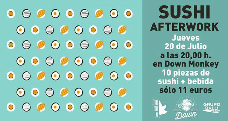 Sushi Afterwork en Valencia El jueves 20 de julio en Down Monkey, situado en el Mercado de Colón se celebra un evento gastronómico con sushi ¿Cuándo? Fecha Del Thursday, 20 de July del 2017 al Thursday, 20 de July del 2017 HORA 20:00 h ¿Dónde? LUGAR Mercado de Colón C/ Jorge juan 19 Ver ficha Comprar entradas ¡Si te gusta el sushi, estás de suerte! El jueves 20 de julio en Down Monkey, situado en el Mercado de Colón organizan un evento de afterwork con el sushi como protagonista. Si no sabes qué hacer en Valencia, échale un vistazo a nuestra agenda de eventos y encuentra los planes más destacados de la ciudad. Después de un largo día de trabajo o estudio, nada mejor que quedar luego con los amigos para picar algo. Por eso el jueves 20 en Down Monkey se celebra Sushi Afterwork un evento gastronómico en Valencia que empezará a las 20:00h y donde por 11€ puedes disfrutar de 10 piezas de sushi elaboradas por Momiji + bebida. No te pierdas este plan de tardeo con amigos, a la sombra del Mercado de Colón. Artículos relacionados Gran Fira de València 2019 Concerts de Vivers 2023 Verano Cine de verano en València
