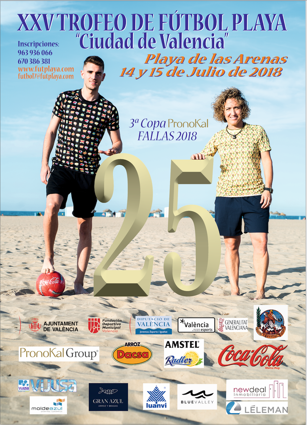Trofeo de Fútbol Playa en la playa de Las Arenas Disfruta del deporte en la playa del 14 al 15 de julio por el XXV Trofeo Ciudad de Valencia de Fútbol Playa ¿Cuándo? Fecha Del Saturday, 14 de July del 2018 al Sunday, 15 de July del 2018 HORA 11:00 h ¿Dónde? LUGAR Playa de las Arenas Passeig de Neptú, 2 Ver ficha El 14 y 15 de julio se celebra el XXV Trofeo Ciudad de Valencia de Fútbol Playa en la playa de Las Arenas. Si te interesan los eventos de la ciudad consulta nuestra agenda. En el evento deportivo habrá Fútbol Playa Amateur de primer nivel, tanto masculino como femenino. Además las Comisiones fallaras de la ciudad disputarán por llevarse la tercera edición de la Copa Fallas Pronokal. En la Copa Fallas Pronokal las comisiones falleras podrán competir por ver qué falla es la mejor sobre la arena. La novedad de este año es que se ha organizado el primer partido mixto en la historia del torneo. Se presentará el 9 de julio. Valencia siempre ha apoyado el deporte. De hecho, fue la primera ciudad española en la que se jugó un torneo de este deporte en 1994. Puedes inscribirte en la web futbplaya ¡Ven a disfrutar del deporte! Artículos relacionados Vive el Mundial en Casino Cirsa Valencia 2ª edición de la Sagunto Race Escuela de verano en Ocean Republik Valencia Boat Show 2025