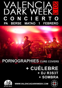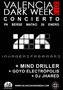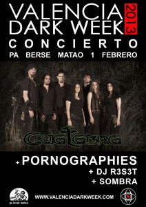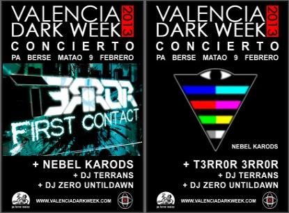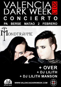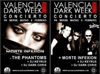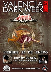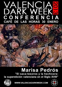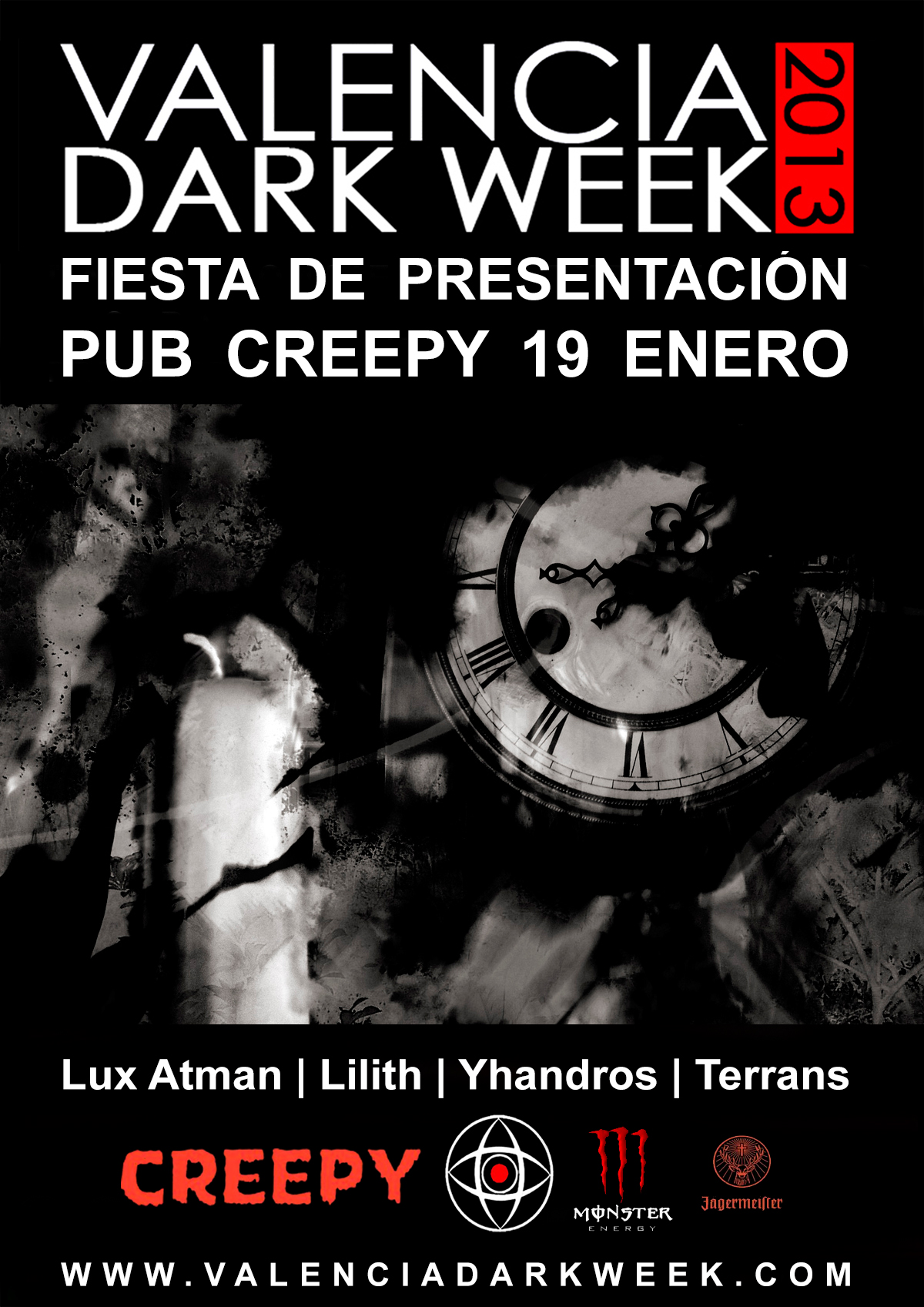 Valencia Dark Week 2013 Numerosas actividades, música y cine en la Valencia Dark Week 2013 ¿Cuándo? Fecha Del Friday, 25 de January del 2013 al Saturday, 16 de February del 2013 HORA 01:00 h ¿Dónde? LUGAR Valencia Valencia Ver ficha Valencia Dark Week llega una edición más llena de actividades como conciertos, danza, moda, exposiciones, cine, etc. Del 25 de enero al 9 de febrero podrás disfrutar de Valencia Dark Week 2013 en los numerosos espacios en los que se desarrolla la acción. Además de un ciclo de terror y ficción del 10 al 16 de febrero. Ya puedes conseguir tu bono por 28 euros. ¡Que tiemble Valencia! Los eventos serán ahora más interesantes que nunca. Consulta toda la programación Sábado 19 de enero Presentación Valencia Dark Week en el Pub Creepy La entrada es gratuita y la apertura de puertas es a partir de las 23:00 horas. Los Djs, Lux Atman, Lilith, Yhandros y Terrans, amenizarán la fiesta. Viernes 25 de enero Noche temática de Steampunk y Dark Cabaret a cargo del colectivo Cabaret de Medianoche (Bcn) y con la actuación del grupo Humpty Dumpty y la sesión ecléptica de LouderThanBombs. A las 23:00 horas en Paberse Matao, precio de la entrada 8 euros con consumición. Sábado 26 de enero Presentación en direto y en exclusiva del nuevo proyecto “Mind Driller” del guitarrista Javi Blood. La vuelta a Valencia de Invadersfrommars y los Djs Jhared y Goyo Electrópolis. En el local Paberse Matao, a partir de las 23:00 horas. Precio 5 euros. Domingo 27 de enero Desfile de modas de la diseñadora Yana Oblap presentando en exclusiva para la Valencia Dark Week su nueva colección. Evento gratuito que tendrá lugar en El Volander, a partir de las 17:00 horas, recital de poesía y relatos cortos. Lunes 28 de enero – Retrospectiva carteles 1980-2013 (Local por confirmar) Exposición que repasa en formato “carteles” los últimos 33 años de fiestas y conciertos oscuros en la ciudad de Valencia. Un viaje en el tiempo que analiza la importancia de la publicidad en este tipo de eventos, así como la trayectoria de la cultura musical en una ciudad como Valencia. – Conjuro (Local por confirmar) “Conjuro” consiste en una colección de fotografías artísticas relacionadas con la magia, el misterio y la fantasía. Son, en su mayoría, retratos de seres misteriosos a la par que fantásticos, es el caso de ninfas, espíritus, ángeles caídos o vampiros. Todos ellos interpretados por mí. – Dark Feelings (Local por confirmar) Dark Feelings es una exposición que reúne a 13 artistas que tratan la carencia de luz, lo desconocido, lo confuso, lo incierto y la incomprensión a través de sus fotografías, retoques o ilustraciones. Exponen: Dorke Fotografía, Oni Kay, Elena Bandos, Miriam Mallea “Sinistralis”, Lady Aradia, Sarah Mafe, Brujilla Patri, Mara Hernandez, Margaret Seidler, Yolanda Violet, Ximo Ferrer, Ultrapervert “Lara Herrera” y Nat Enemede Fotografía. Martes 29 de enero Evento que se realizará en el Café de las Horas de forma gratuita a partir de las 19:00 horas. Valencia Dark Week abre un espacio a la literatura fantástica y de terror con UMA SOONA, presentando la última novela de esta saga: El Carnicero de la Cabaña. Una brutal historia de sangre, deseo y fantasía. Julio García Robles, autor también de las sangrientas andanzas de Sarima Vamp y la fantástica aventura de El pequeño Budy y el Dragón Blanco, nos acompañará con la charla “Una historia fantástica: un libro, de la nada a la librería“. Donde expondrá cómo plasmar una novela desde la concepción del autor en su mente hasta su venta en librerías. Miércoles 30 de enero A las 19:00 horas en El Café de las horas. “El saca-tesoros y la hechicera: la superstición valenciana en el Siglo XVIII” La historiadora Marisa Pedrós nos hablará, en trazos generales, de los delitos de superstición perseguidos por el tribunal de la Inquisición de Valencia en el siglo XVIII. Jueves 31 de enero Pase de modelos de InTorzo. InTorzo nace de una idea revolucionaria donde la inspiración evoluciona en los diversos segmentos de estilos de tribus urbanas, sobretodo enfocado al amplio mundo del Metal y sus variantes, Goth, Cyber, Punk, Rock… potenciando los cánones establecidos por estos estilos y jugando con minuciosas variantes. Café de las Horas a las 19:00 horas. Viernes 1 de febrero Actuación en el Paberse Matao, precio 8 euros, inicio a las 23:00 horas. El grupo Cuélebre nos deleitara con un concietro de Folk /Medieval y Pornographies Cure Covers darán el toque ochentero con un concierto basado en la trilogía mas oscura de The Cure, Seventeen Seconds, Pornography y Faith. En cabina dos Djs consagrados en la escena Valenciana, Dj R3s3t y Sombra. Sábado 2 de febrero Concierto a las 23:00 horas en el local Paberse Matao en una noche de conciertos. El grupo de Rock Gótico, Over, abrirá esta noche en la cual continuara con la actuación de la banda de Electro dark, Mondträume por primera vez en Valencia. Domingo 3 de febrero Evento que comienza a las 17:00 horas en el local Volander Katiara Karanlik se acompañada en sus espectáculos de alas de isis, dobles velos, bastón, chinchines y otros materiales y consigue introducir en esta danza movimientos que nos llevan a recordar el “headbanging” tan propio del heavy metal, debido a su pasión por esta música. En junio de 2011 forma un grupo de danza y percusión en directo llamado “Anam Caranlik Ates” junto con un gran percusionista, desde entonces sus espectáculos se han convertido en una excelente combinación de armonía y energía que nunca dejan a nadie indiferente. Palmira Roca, Nuray Imamkulieva y Aidan Imamkulieva, forman Siboney Danza, que con motivo de la Valencia Dark Week estrenarán una pieza de nueva creación titulada, “IN-PULSO”, donde se entrelazan la voz lírica, la música clásica, la música electrónica y la danza. Dulzura, suavidad, oscuridad, misterio, expresividad, movimiento, p