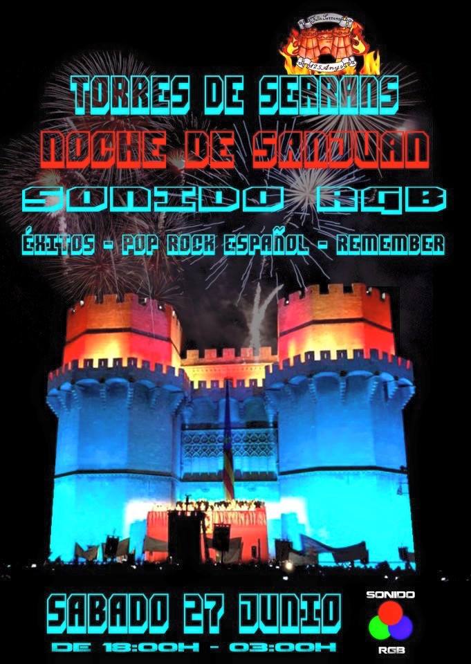 La Falla de Serranos-Plaza de los Fueros va a poner en pie a toda la gente que se pase por las Torres de Serranos con una verbena que durará desde las 18:00h hasta las 03:00h. El sábado 27 de junio podrás disfrutar de la mejor música con Sonido RGB: pop-rock español y remember.