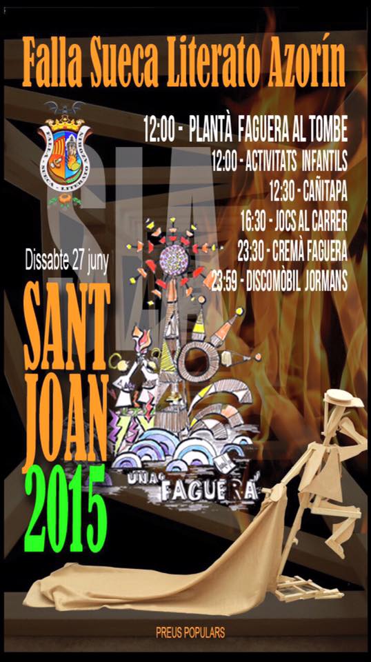 Ruzafa no descansa. El sábado 27 de junio la Falla Sueca-Literato Azorín también propone su verbena de San Juan a partir de las 00:00h con la discomóvil Jormans.