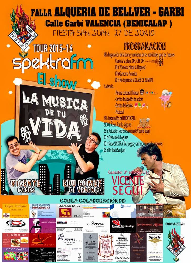 Clases de zumba, gymkana acuática, photocall y una parrilla gigante son algunas de las actividades que se podrán encontrar en la verbena de la Falla Alqueria de Bellver – Garbí, en la Calle Garbí. Además, la noche del 27 de junio estará amenizada por el Show Spektra FM de 00:00h a 03:00h, con la mejor música de los 80 hasta hoy.