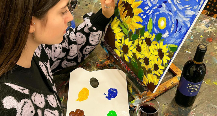 Wine Gogh Valencia, pinta y bebe vino en València Wine Gogh, una experiencia en Valencia para pintar y beber vino ilimitado ¿Cuándo? Fecha Del Thursday, 18 de May del 2023 al Friday, 26 de May del 2023 HORA 11:00 h ¿Dónde? LUGAR Valencia Valencia Ver ficha Wine Gogh llega a Valencia. Una experiencia única para pintar y beber vino en Valencia. Un plan ideal para disfrutar solo o acompañado con amigos, familia o en pareja. Consulta más planes en nuestra agenda de eventos. Disfruta de esta experiencia de jueves a domingo, en una clase de dos horas y media impartida por artistas expertas, en las que podrás desconectar de la rutina, disfrutar y expresarte mientras pintas y bebes vino. Si te gusta el arte y el vino, este es un plan perfecto. Para artistas, para amantes de la pintura o para pasar un buen rato mientras pintas siguiendo las pautas de una artistas experta y bebes vino ilimitado. Y sino te gusta el vino, no te preocupes porque puedes beber agua ilimitada o traerte un refresco. En Wine Gogh aprenderás a hacer tu propio cuadro mientras bebes vino ilimitado con música. Deja volar tu imaginación, aparta tus problemas durante un rato y date un respiro para desconectar. Solo tienes que reservar en la web oficial de Wine Gogh y sacar tu lado creativo. La actividad incluye, las copas de vino ilimitado, los lienzos, las pinturas y los pinceles para pintar en Valencia. Las próximas fechas de Wine Gogh Valencia son las siguientes: Sábado 20 de mayo Sábado 20 de mayo a las 11:00h – Wine Gogh Neón «Wine Glow» Sábado 20 de mayo a las 16:00h – Wine Gogh Classic «El faro» Sábado 20 de mayo a las 19:00h – Wine Gogh Neón «Starry Night» Domingo 21 de mayo Domingo 21 de mayo a las 11:00h – Wine Gogh Neón «Safari Glow» Domingo 21 de mayo a las 17:30h – Wine Gogh Neón «Elephant Rainbow» Jueves 25 de mayo a las 18:30h – Wine Gogh Neón «The Muse» Viernes 26 de mayo Viernes 26 de mayo a las 18:30h – Wine Gogh Neón «Medusa» Viernes 26 de mayo a las 18:30h – Wine Gogh Neón «Giraffe Dream» ¡Crea tu propia obra maestra y llévatela a casa!