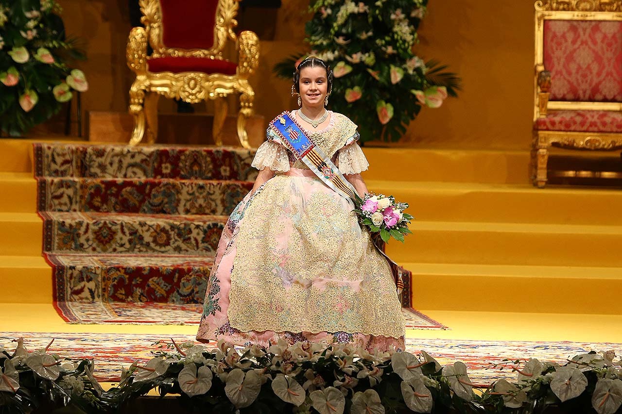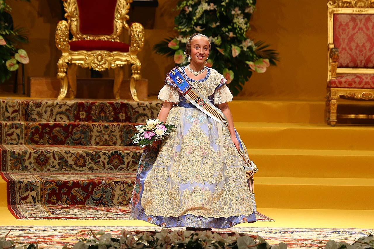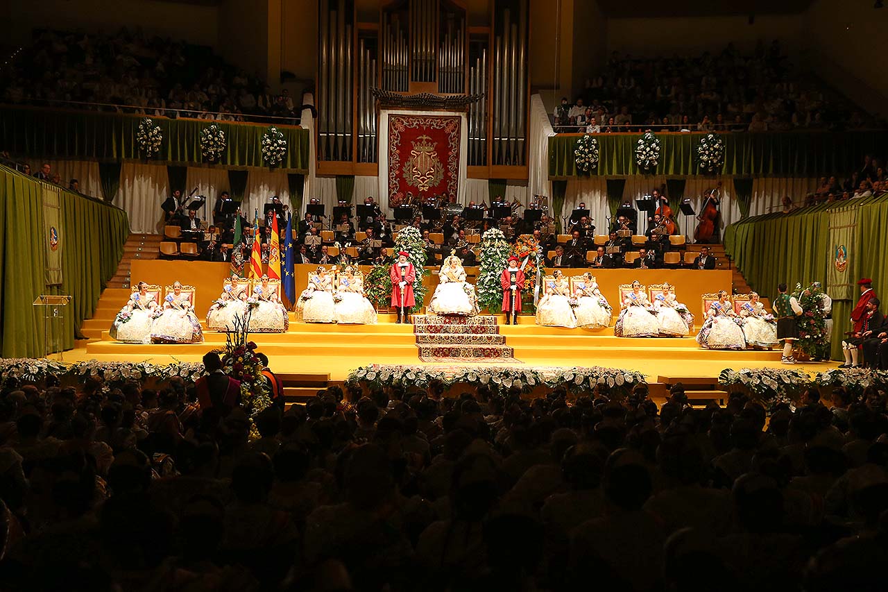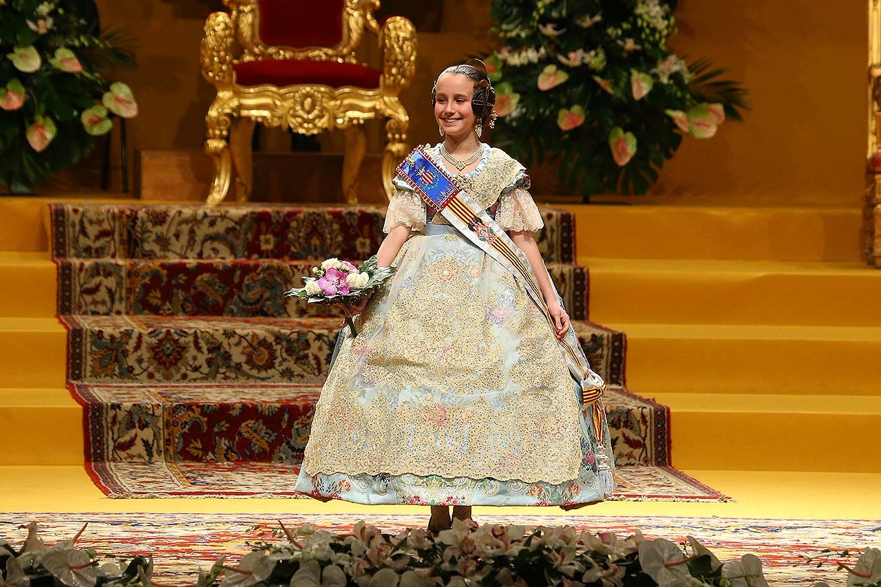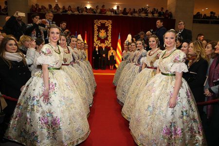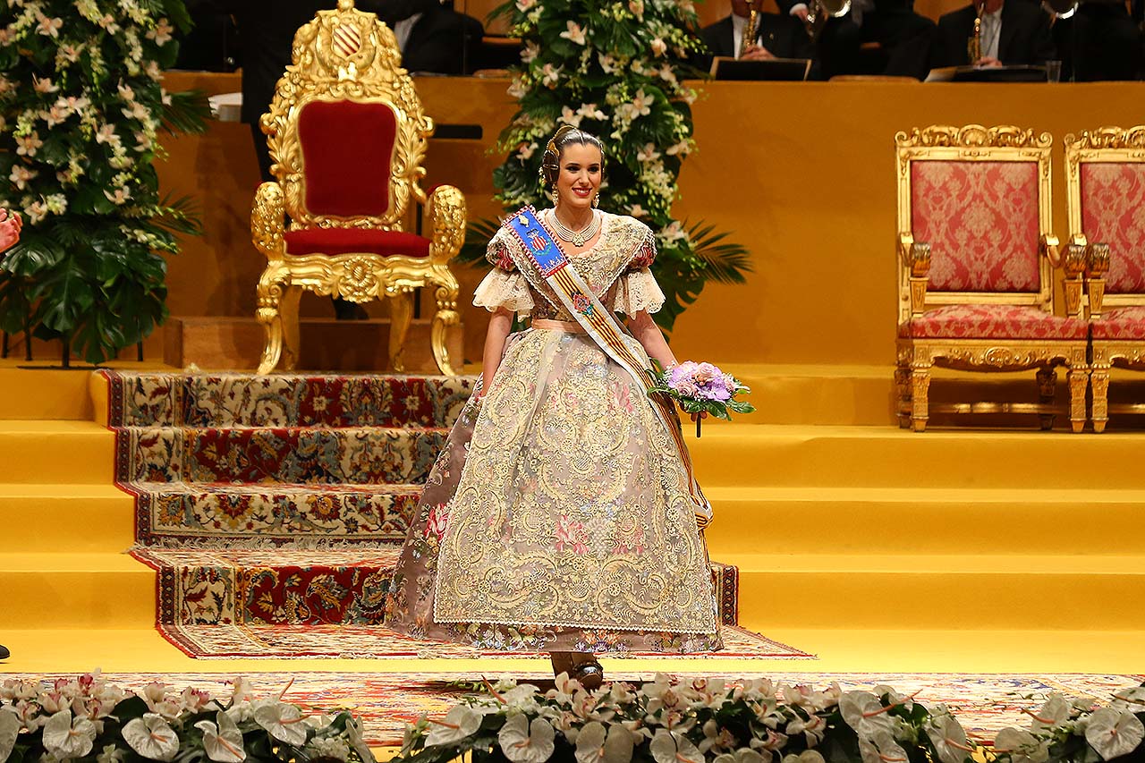 Exaltación de las Falleras Mayores 2018 Los días 26 y 27 de enero de 2018 tuvo lugar la Exaltación de las Falleras Mayores de Valencia en el Palau de la Música, con espectáculo pirotécnico al acabar cada acto. Los días viernes 26 y sábado 27 de enero de 2018 Valencia ha celebrado unos de los actos previos más importantes a estas Fallas 2018: la Exaltación de las Falleras Mayores 2018. No dejes de consultar el Programa de Fallas 2018 y entérate de todo lo que acontece la fiesta fallera. Hay un día reservado para cada Fallera Mayor de Valencia. Por una parte el día viernes 26 de enero a las 21:30h tuvo lugar la Solemne Exaltación de la Fallera Mayor de Valencia Srta. Rocío Gil Uncio y su Corte de Honor 2018. El acto tuvo lugar en el Palau de la Música de Valencia. Al finalizar la Exaltación, hubo un espectáculo pirotécnico con efectos de luz y color. El día siguiente, sábado 27 de enero de 2018, a las 18:00 horas tuvo lugar la Solemne Exaltación de la Fallera Mayor Infantil de Valencia niña Daniela Gómez de los Ángeles y su Corte de Honor Infantil 2018. De nuevo el acto se celebró en el Palau de la Música, y al finalizar la Exaltación se contó con otro espectáculo pirotécnico lleno de color y luces. Con ocasión de la Exaltación, Vives y Marí tejió el espolín que la fallera mayor Rocío Gil Uncio lució en el acto. El espolín ha sido tejido manualmente en tres turnos de trabajo y se han empleado unas 650 horas aproximadamente. La confección del traje ha corrido a cargo de Eugenia Puertes y para el color de fondo se ha elegido el Habane, una tonalidad de marrón con mucha elegancia que se ha combinado con diferentes oros consiguiendo una tela dulce y personal. Daniela Gómez de los Ángeles, la Fallera Mayor Infantil de València, ha llevado en su Exaltación un espolín en tono azul turquí de la firma Garín y confeccionado por La Joia. Galería de imágenes Corte de Honor 2018 Corte de Honor Infantil 2018 Disfruta de la gran fiesta de Valencia y conoce las Falleras Mayores 2018. Consulta toda la agenda de Valencia y qué hacer en invierno en Valencia.
