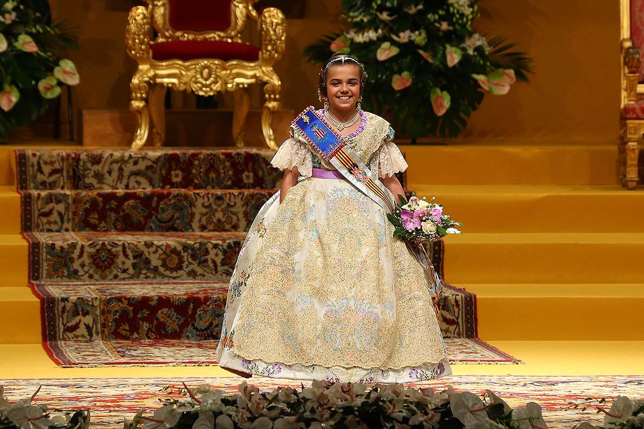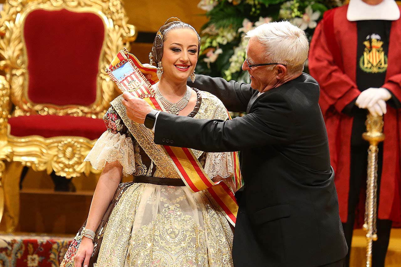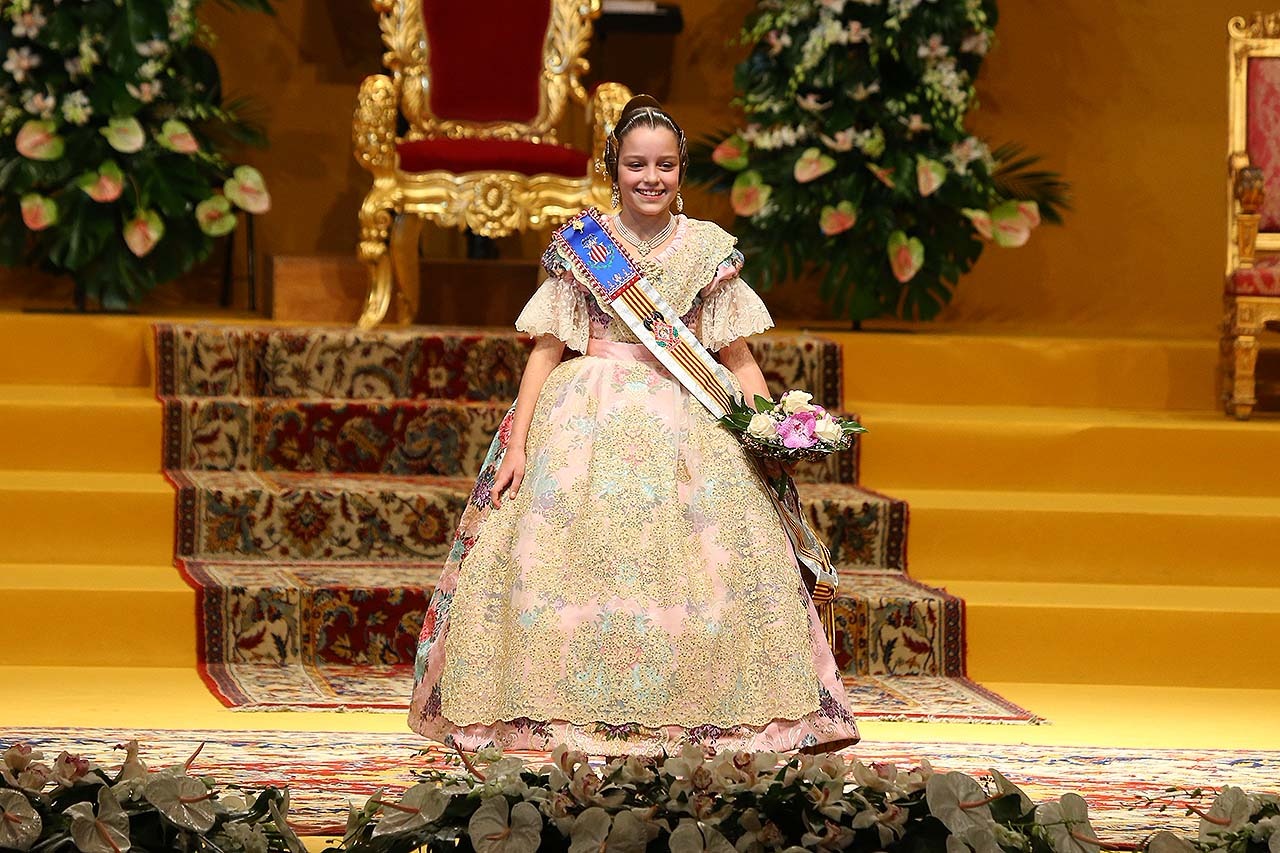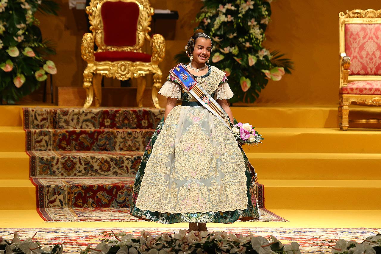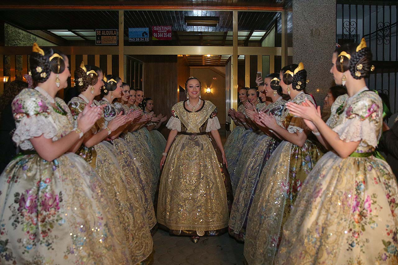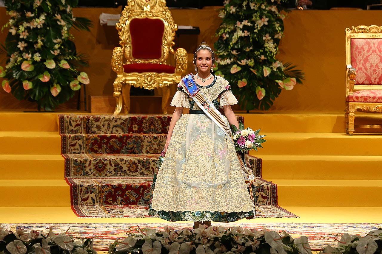 Exaltación de las Falleras Mayores 2018 Los días 26 y 27 de enero de 2018 tuvo lugar la Exaltación de las Falleras Mayores de Valencia en el Palau de la Música, con espectáculo pirotécnico al acabar cada acto. Los días viernes 26 y sábado 27 de enero de 2018 Valencia ha celebrado unos de los actos previos más importantes a estas Fallas 2018: la Exaltación de las Falleras Mayores 2018. No dejes de consultar el Programa de Fallas 2018 y entérate de todo lo que acontece la fiesta fallera. Hay un día reservado para cada Fallera Mayor de Valencia. Por una parte el día viernes 26 de enero a las 21:30h tuvo lugar la Solemne Exaltación de la Fallera Mayor de Valencia Srta. Rocío Gil Uncio y su Corte de Honor 2018. El acto tuvo lugar en el Palau de la Música de Valencia. Al finalizar la Exaltación, hubo un espectáculo pirotécnico con efectos de luz y color. El día siguiente, sábado 27 de enero de 2018, a las 18:00 horas tuvo lugar la Solemne Exaltación de la Fallera Mayor Infantil de Valencia niña Daniela Gómez de los Ángeles y su Corte de Honor Infantil 2018. De nuevo el acto se celebró en el Palau de la Música, y al finalizar la Exaltación se contó con otro espectáculo pirotécnico lleno de color y luces. Con ocasión de la Exaltación, Vives y Marí tejió el espolín que la fallera mayor Rocío Gil Uncio lució en el acto. El espolín ha sido tejido manualmente en tres turnos de trabajo y se han empleado unas 650 horas aproximadamente. La confección del traje ha corrido a cargo de Eugenia Puertes y para el color de fondo se ha elegido el Habane, una tonalidad de marrón con mucha elegancia que se ha combinado con diferentes oros consiguiendo una tela dulce y personal. Daniela Gómez de los Ángeles, la Fallera Mayor Infantil de València, ha llevado en su Exaltación un espolín en tono azul turquí de la firma Garín y confeccionado por La Joia. Galería de imágenes Corte de Honor 2018 Corte de Honor Infantil 2018 Disfruta de la gran fiesta de Valencia y conoce las Falleras Mayores 2018. Consulta toda la agenda de Valencia y qué hacer en invierno en Valencia.