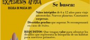 “Expedición África” en Bioparc Valencia Del 26 al 29 de abril se celebra la Escuela de Pascua 2011 para niños “Expedición África” busca niños para conseguir llevar a cabo su misión. Bioparc Valencia organiza la Escuela de Pascua 2011, que convoca a niños de entre 9 y 12 años para que se conviertan en exploradores. Del 26 al 29 de abril tendrán que lograr una misión: encontrar un planeta donde alojar a las especies en peligro. Para ello, visitarán la lejana galaxia de “Acirfa”. A través de juegos, manualidades y gincanas se ayudará a comprender a los niños la necesidad de cuidar el planeta y tendrán que poner a salvo a los primates. Para más información, hacer click aquí.