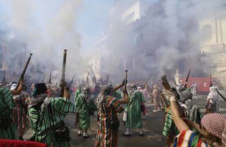Fiestas de Ontinyent 2012 Ontinyent celebra sus fiestas con los moros y cristianos a finales de agosto. Sobre el cuarto fin de semana de agosto se celebran las Fiestas de Ontinyent 2012 donde el acto más destacado son los moros y cristianos que tiene lugar el viernes. Otro de los momentos más espectaculares de la fiesta es la Bajada del Cristo de la Agonía. El punto que marca el final de unos intensos y agotadores cinco días de fiesta, es el desfile final. Programa de Fiestas de Ontinyent 2012 DOMINGO 19 DE AGOSTO 09:00 En la Ermita de Santa Ana Santa Misa en sufragio de los festeros fallecidos. 10:00 En la Sociedad de Festeros “Esmorzar de la Llàgrima”. 23:00 En la Plaza Mayor, Presentación de Cargos 2012 y Pregón de Fiestas. LUNES 20 DE AGOSTO 10:00 XII Rally de Coches Antiguos desde la Plaza de Santo Domingo ¿? 23:00 En la Plaza Mayor XIX Concurso de Cabos de Escuadra Infantiles. MIÉRCOLES 22 DE AGOSTO 12:00 Carrera de Camareros, en la Plaza de Santo Domingo 20:00 En la plaza de la Vila, Concierto de Música Festera 23:30 Espectáculo para todos los públicos en la Glorieta JUEVES 23 DE AGOSTO 18:00 Desde la Plaza de la Concepción y por las calles Gomis y Mayans, Entrada de Bandas de Música. Al finalizar en la Plaza Mayor todas las bandas participantes interpretarán conjuntamente la marcha mora “CHIMO” del insigne compositor D. Jose María Ferrero Pastor. Este año bajo la batuta del director Francisco Valor Llorens. 23:30 Gran Desfile de “Alardos”, a ritmo de pasodoble por las avenidas Almaig y Daniel Gil. 01:00 En los jardines de la Glorieta, Discomovil VIERNES 24 DE AGOSTO 11:00 Entrada Infantil por la Avenida Daniel Gil. 17:30 Comenzará la ENTRADA DEL BANDO CRISTIANO al disparo de una potente carcasa; verdadero despliegue de imaginación y recreación histórica al son de triunfales marchas cristianas. La capitanía la ostenta la comparsa Bucaneros. 22:30 Empezará la ENTRADA DEL BANDO MORO, mostrando toda la magia, la fantasía y el esplendor oriental desfilando con la cadencia de fastuosas marchas moras. Todo ello acompañado de vistosas coreografías alusivas a esta representación. La capitanía la ostenta la comparsa Berberiscos. Ambas recorrerán las avenidas Almaig y Daniel Gil, finalizando enla Pl. Concepción. SÁBADO 25 DE AGOSTO 07:30 Dará comienzo la Diana desde la Pl. Coronación pasando por Sant Antoni, Capellans, Les Eres, Dos de Maig, Gomis, Mayans y finalizando en la Plaza Mayor. 11:30 Inicio del desfile para el acto del Contrabando desde la Pl. Concepción, protagonizado por las comparsas Marineros y Contrabandistas. 12:00 Se celebrará el Contrabando a cargo de las comparsas de Marineros y Contrabandistas en la Pl. Mayor. 13:30 Inauguración y Pregón del XV Mercado Medieval en el barrio de la Vila. Este mercado permanecerà abierto hasta el Lunes. 17:30 Representación del texto de “La Baixà” en el Calvario de Santa Ana. Al finalizar disparo de los capitanes y batalla de arcabucería. Bando Cristiano: Explanada de la ermita de Santa Ana hasta rotonda del Salvador. Bando Moro: Cruce del camino con el Calvario de Santa Anna hasta rotonda del Salvador. 18:30 Procesión de la Bajada del Santísimo Cristo de la Agonía, por Cantereria, Plaza de Baix, Plaza Mayor y Gomis. 02:00 Castillo de Fuegos Artificiales en el cauce del río (Pont Vell). 02:30 Actuación de la orquesta ¿? en los jardines dela Glorieta. Entrada libre. DOMINGO 26 DE AGOSTO 06:30 Misa de Campaña en la Plaza de Santo Domingo. 07:00 Diana de Gala por Plaza Santo Domingo, Alcalde Paco Montés, Dos de Mayo, Glorieta de los Moros y Cristianos, Gomis, Mayans y Plaza Mayor. 11:00 Mercado Medieval en el barrio de la Vila (hasta las 23h.) 11:30 Misa Mayor en la Parroquia de San Carlos. Al finalizar la Misa, visita al Santo Hospital de Beneficencia. 18:00 Solemne Procesión, por la Plaza Santo Domingo, Alcalde paco Montés, Dos de Mayo, Glorieta de los Moros y Cristianos, Gomis y Mayans hasta la Real Parroquia de San Carlos. Al llegar el Cristo ala Glorieta de los Moros y Cristianos se disparará un Castillo de Época de fuegos de artificio. A la 1 de la madrugada, en el cauce del río Clariano, celebración de “La Nit del Riu”. Rememoración de las antiguas batallas navales que se celebraban, con la participación especial de las comparsas de Estudiantes, Marineros y Moros Marinos y la colaboración del resto de las comparsas. 01:00 Actuación de la Orquesta Montecarlo ¿? en el paseo deLa Glorieta. Entrada libre. LUNES 27 DE AGOSTO 10:00 En la Real Parroquia de San Carlos Misa Concelebrada en honor al Santísimo Cristo de la Agonía. 11:00 Mercado Medieval en el barrio de la Vila (hasta mediodía). 11:00 Batalla de arcabucería con desfile de las comparsas moras desde el barrio de la Cantereria y de las comparsas cristianas desde el puente de Santa Maria. 12:00 EMBAJADA MORA en la Pl. Mayor. 17:00 Batalla de arcabucería con desfile de las comparsas cristianas desde el barrio de la Cantereria y de las comparsas moras desde el puente de Santa Maria. 18:00 EMBAJADA CRISTIANA y Desfile Final por las calles Mayans y Gomis, finalizando en la Plaza de la Concepción. DOMINGO 9 DE SEPTIEMBRE 11:30 Misa de Dobla en la Real Parróquia de San Carlos. 19:00 Procesión de la Subida del Santísimo Cristo. Desde el mismo templo la imagen del Santísimo Cristo de la Agonía será trasladada en Solemne Procesión hasta su Ermita por las calles Gomis, Plaza Concepción, Pont Nou y Avenida San Francisco. A su llegada se disparará un castillo de fuegos artificiales y concluirán las fiestas de 2012.