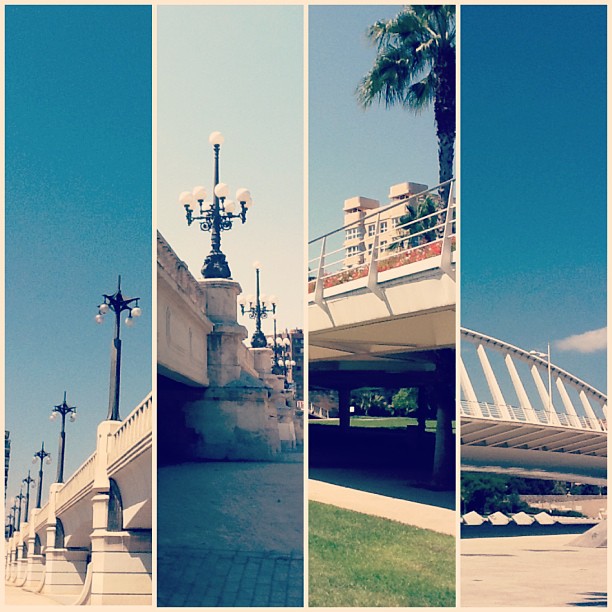 Algunos puentes del antiguo cauce del Turia: Puente del Reino… (m2allue) Algunos puentes del antiguo cauce del Turia: Puente del Reino con sus gárgolas ????, Puente del Ángel Custodio, Puente de las Flores que me encanta porque al hacerlo respetaron las palmeras que había debajo y Puente de la Exposición o la Peineta ???? #pont #puentes #valencia #valenciagram #valenciacity #valencia2013 #lovevalencia