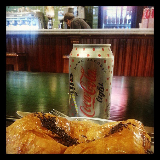 Last “meal” in Valencia ;) (yvonmunk) Last “meal” in Valencia 😉 <3 #lovevalencia#croissant#chocolate#markjacobs#cocacolalight
