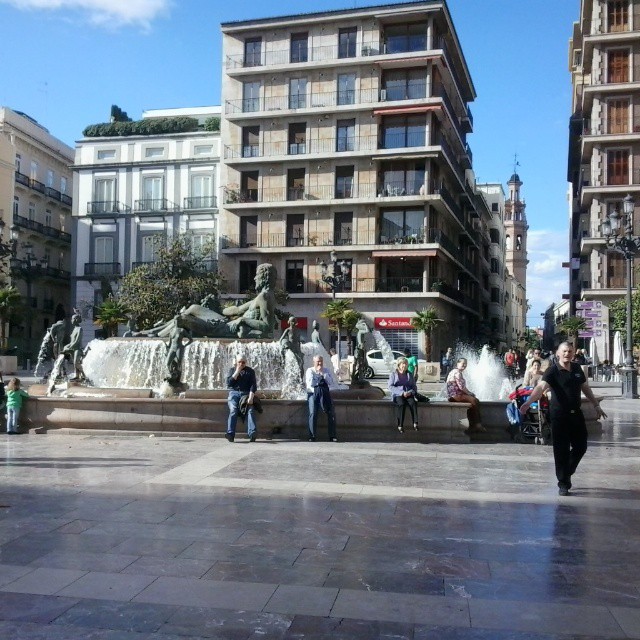 Momentos con Neptuno. Esta es la plaza de la virgen… (mala.lopez) Momentos con Neptuno. Esta es la plaza de la virgen emblematica en la ciudad,la cual es engalanada por la fuente de neptuno,con sus siete caños que representan las 7 acequias de valencia. Moments with Neptune. This is the virgin emblematic square in the city, which is adorned by the source of Neptune, with its seven pipes 7 representing the valence ditches. #valenciacity#lovevalencia#instavalencia#igersvalencia#momentsrelax#thislive#life#instalive#culturavalencia#paseandoporvalencia#nofilter#vscocam#vscoarts#vscohistoria
