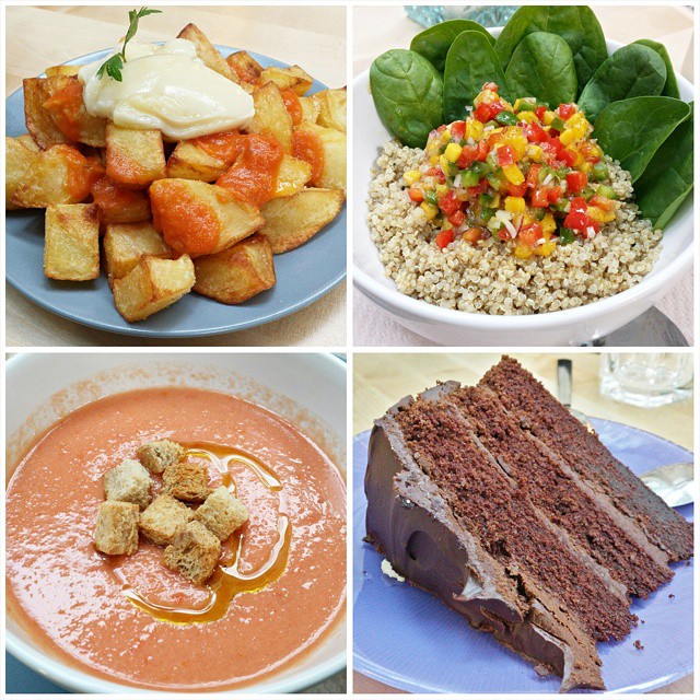Nos hemos venido hasta @lamasbonitavlc de #Ruzafa a comer. Unas… (thespanishfood) Nos hemos venido hasta @lamasbonitavlc de #Ruzafa a comer. Unas bravas bravísimas, gazpacho fresquito y casero, ensalada de quinoa y porción de bizcocho de chocolate. #foodandfun #foodandfunvlc #comerenvalencia #healthyfood #healthylife #fresco #valencia #vidasana #eresloquecomes #restaurantes #unaagendaconestilo #tarta #guiadevalencia #comunidadvalenciana #city #restaurante #losimprescindibles #igpic #sitiosdondecomer #tapas #cool #gastronomiaespañola #vegetarianfood #food #fitfood #lovevalencia