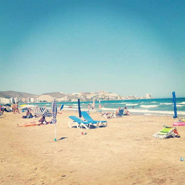 Relaxing on the beach before we climb the mountains in… (itslouise2u) Relaxing on the beach before we climb the mountains in the distance #sorrynotsorry #beach #mountain #cullera #valencia #lovevalencia