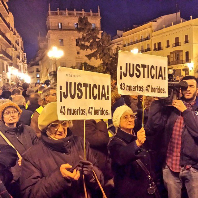 Son un ejemplo de compromiso y lucha por la dignidad.… (welovevalencia) Son un ejemplo de compromiso y lucha por la dignidad. Se cumplen 100 concentraciones con la Asociación de Víctimas del Metro de Valencia, como cada día 3, exigiendo respuestas. Un nuevo Consell socialista reparará tanto sufrimiento y reabrirá la investigación en 2015 #0responsables #el3todosalaplaza #el3totsalaplaça #Valencia #València #Justicia #Dignidad #MetroValencia #AlcaldeCalabuig #CalabuigAlcalde #igersValencia #igersvalencians #welovevalencia #loveValencia