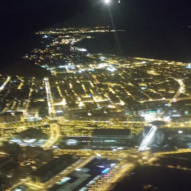 Valencia desde el aire. Se puede ver la ciudad de… (varoru) Valencia desde el aire. Se puede ver la ciudad de las artes y de las ciencias. #valencia #valenciagram #valenciacity #valenciadesdeelaire #plane #flight #night #lights #nofilter