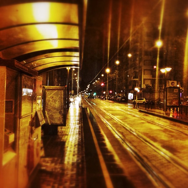 Waiting for the tram… #valencia #lovevalencia #rain #night