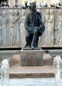 Fuentes de Valencia Valencia está repleta de fuentes. Algunas están dedicadas a la naturaleza, otras a personajes ilustres pero todas ellas tienen su historia. Valencia es una ciudad con numerosas fuentes. Algunas de las más bonitas son las siguientes: Fuentes de La Alameda La Fuente de las 4 estaciones. Situada en el extremo este de La Alameda, junto al Puente del Real. Fue colocada en 1861. La fuente tiene una altura de 8 metros y 2 metros de diámetro. En 2009 volvió a su color original, en negro con algunas figuras en dorado. Cuando se inauguró levantó muchos comentarios ya que gran parte de la sociedad valenciana de la época se escandalizó del desnudo de la “primavera”. Fuente de los 4 elementos. Situada en el extremo oeste de La Alameda junto al Puente de Aragón. Se colocó con motivo de la feria de julio de 1878, procedente del Mercado Central de Valencia donde estaba instalada desde 1852. En 1875 se modernizó con el añadido de cuatro surtidores en forma de niños. Fuente de la diosa Flora. Instalada en 1864. De mármol blanco de Carrara, esculpida por el escultor valenciano José Piquer en Roma. Reproduce un original griego conservado en Londres. Popularmente se la ha conocido como “La Font de la Cistella” por el cesto con vegetales que lleva la diosa. Fuente al Doctor Moliner . Obra en mármol de Carrara de 1919 del escultor valenciano José Capúz Mamano. Se compone de la efigie del médico valenciano Francisco Moliner Nicolás (Valencia 1851-Madrid 1915), junto con dos alegorías, la Ciencia y el Amor Maternal. El doctor Moliner fue catedrático de Patologia médica, obstretricia y fisiologia; y rector de la Universidad de Valencia. El grupo escultórico fue levantado por suscripción popular. Fuente del Tritón. Se encuentra en los jardines de La Glorieta. Se inspira en una obra de Bernini. El personaje central de la fuente es el dios Tritón y está realizado en mármol blanco. Se llevó a La Glorieta en 1883 y es obra de Giacomo Antonio Ponzanelli. Fuente de la Plaza de San Luis Bertran.Se levantó en 1966 frente a la fachada de su Casa Natalicia. La fuente está construida con piedra de Jávea. La obra fue dirigida por los arquitectos Román Jiménez y Emilio Rieta. Fuente de la Sociedad Económica de Amigos del País. Se encuentra en la Plaza de San Vicente Ferrer. Conmemora el comienzo en Valencia de la vida comercial moderna, por el impulso de la Real Sociedad Económica de Amigos del País, suceso que afectó tanto a un nuevo sentir corporativo ciudadano. El jardín que la rodea se restauró en 1983. Fuente del canónigo Liñán. En la plaza de la Virgen se encuentra este busto obra del escultor José Esteve Edo, según la iconografía de dicho personaje pintada por Vicente López. El canónigo Mariano Liñan llegó a ser obispo preconizado de Teruel. Fuente del negrito. Situada en la plaza del mismo nombre, fue la primera fuente pública de agua potable que hubo en la ciudad. Se inauguró en 1850, al mismo tiempo que se inauguraba este servicio en la ciudad. La fuente está realizada con hierro fundido y fue precisamente el color oscuro de esta material el que originó que popularmente se le adoptase como “el negrito”. Fuente del Tribunal de las Aguas. Se encuentra en la plaza de la Virgen, al lado de la Catedral de Valencia. La fuente es un homenaje al río Túria y a las acequias; un homenaje al Tribunal de las aguas. Toda la fuente es obra del escultor Manuel Silvestre Montesinos o “Silvestre de Edeta”, realizadas las figuras en bronce mientras que el resto es de piedra. Fue inaugurada en 1976. Fuente de las tres ninfas o de los patos. Se encuentra en la plaza de Rodrigo Botet. Está realizada en piedra y hierro colado. Coloquialmente se conoce como fuente de los patos, que forman parte de la decoración de la fuente. Fuente del Marqués de Campo. Se encuentra en la Avenida Marqués del Túria. Mariano Benlliure fue galardonado con la medalla de oro en la Exposición Internacional de Bellas Artes de Munich de 1894 gracias a esta obra. En 1929 la fuente se trasladó a la plaza Cánovas del Castillo. Las cuatro estatuas situadas en la parte baja de la fuente rememoran las cuatro empresas a las que se dedicó el Marqués; la ferroviaria, el gas, la navegación y la caridad. La cara de la monja es la cara de la mujer del Marqués. Fuente de los niños. Se sitúa en la plaza del Carmen. La fuente-monumento fue inaugurada en la feria de julio de 1962. Se reproduce en bronce la “Fuente de los niños” del maestro Mariano Benlliure, cuyo original en yeso se expone en el Museo de Bellas Artes de Valencia. Esta fuente le rinde un homenaje al propio Benlliure. Fuente de Neptuno. En los jardines del Panterre. La figura central es obra barroca en mármol de Giacomo Antonio Ponzanelli realizada en el siglo XVIII. En el año 1818 fue instalada en La Glorieta para pasar hacia 1960 al Parterre, donde permanece. Fuente al Maestro José Serrano. Se encuentra en la Avenida de Antiguo Reino de Valencia. Su obra más conocida es el Himno de Valencia. Otras obras conocidas son “El fallero”-fundamental en las Fallas de Valencia- o “Valencia, canta” dedicada a la Virgen de los Desamparados. La fuente-monumento se inauguró 28 de febrero de 1965. Fuente a Joaquín Sorolla. En la plaza de la Armada Española se encuentra esta fuente-monumento. El busto lo realizó Mariano Benlliure. Fue colocado en la Playa de la Malvarrosa en 1933, y tenía como fondo una columnata. La riada de 1957 lo arrasó. En 1962 se ubicó en la Plaza de la Armada Española. En 1974 el Ayuntamiento decidió colocar al fondo la Portada del antiguo Banco Hispano Americano que el banco cedió para tal fin.