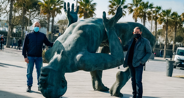 ‘Gigante de sal’, la nueva escultura de la Marina de València El dúo de escultores Coderch & Malavia exponen en València su última creación: 'Gigante de sal', una escultura en bronce de cuatro metros de altura El dúo de escultores Coderch & Malavia, galardonados con el Premio Reina Sofía de Pintura y Escultura en su 52ª edición, exponen su última creación ‘Gigante de sal’, una escultura en bronce de cuatro metros de altura, al aire libre en la emblemática rotonda de las banderas de La Marina de València. Con ‘Gigante de sal’ estos artistas figurativos que ya han celebrado numerosas exposiciones individuales y colectivas en países europeos como Alemania, Bélgica o Francia, mostrarán su trabajo por primera vez en Valencia, ciudad en la que están afincados y donde se ubica su taller. La espectacular envergadura de esta escultura hiperrealista, que se puede visitar desde desde el 23 de febrero, permitirá a los visitantes interactuar con la obra. En este sentido, tantos los artistas como La Marina tenían claro que el propósito de sacar esta escultura a la calle era acercar a los ciudadanos una disciplina artística normalmente reservada a las salas de un museo o a las colecciones privadas. “Las piezas se perciben de forma muy distinta en la calle”, explican Coderch Malavia. Además, esta pieza que se inspira en la danza Butoh, un baile japonés sumamente expresivo y que transmite el dolor colectivo que se siente tras una tragedia y el resurgir después de la misma, puede conectar muy bien con la sociedad actual que tiene que replantearse cuál será su papel en la reconstrucción social tras la crisis que está causando la COVID-19. De este modo, el proyecto profundiza en los cambios que se generan tras las grandes tragedias, cuando surge una conciencia de humanidad y de grupo muy fuerte. En este caso, los artistas tratan de expresar a través del cuerpo retorcido del Gigante de Sal la esencia de la vida: caer y revivir, buscando la comunión entre opuestos y sobre todo, tratando de aprender de nuestros errores. El espíritu Coderch & Malavia: la energía controlada, la belleza capturada Los escultores Coderch & Malavia configuran uno de los dúos escultóricos con mayor proyección internacional del momento. Unidos en un mismo destino –tras su paso por los talleres de una gran empresa dedicada a la producción artística– su obra plasma los equilibrios emocionales a los que se enfrenta el ser humano a través del modelado a cuatro manos de figuras realistas que emanan una energía controlada y una belleza atemporal. Dos mentes creadoras en constante dialogo, así se sienten Joan Coderch (Barcelona, 1959) y Javier Malavia (Guipúzcoa, 1970) cuando se enfrentar a la creación de cada una de sus piezas artísticas. El cuerpo humano y las artes son fuentes de inspiración constantes de las que nutrirse y dejarse llevar para, a través de un método de trabajo propio, esculpir sus obras a cuatro manos. En el proceso, que podríamos tildar de catártico, ambos dejan de lado egos e individualidades para proporcionar peso y volumen físico a lo efímero y permitir al espectador adentrarse en las múltiples capas de conocimiento de cada una de sus esculturas. Su discurso estético radica en un férreo compromiso con la perfección de las formas para conseguir figuras que plasmen las pasiones y frustraciones que mueven al ser humano contemporáneo en constante equilibrio y transformación.