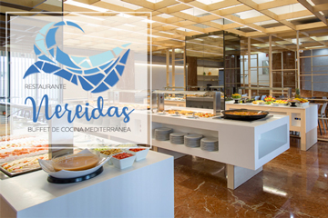 Il restaurante Nereidas, dell’ Olympia Hotel, ha un buffet libero formula all you can it di cucina mediterranea.