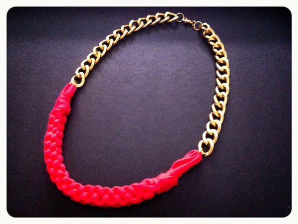 Otro de los expositores que me llamó la atención fue Babisú artesanales definitivamente a la moda. Combinando los colores neón, con las cadenas doradas o plateadas, que tanto están en tendencia hoy en día, como el que tenéis a continuación, que es una de sus creaciones: