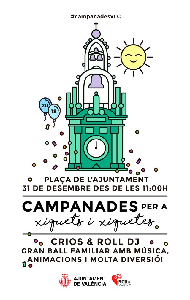 Festeggia l'arrivo del 2019 con i piccoli di casa alla festa di Capodanno per bambini dell'Ayuntamiento di Valencia la mattina del 31 dicembre.