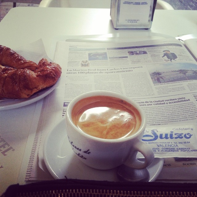 Cruasán,café con leche y Levante #levante#periodico#valencia#hábitos#love#routine#lovevalencia#suizo#calle#barcelonina#ayuntamiento#valencia#best#bar#mejor#follow#followback