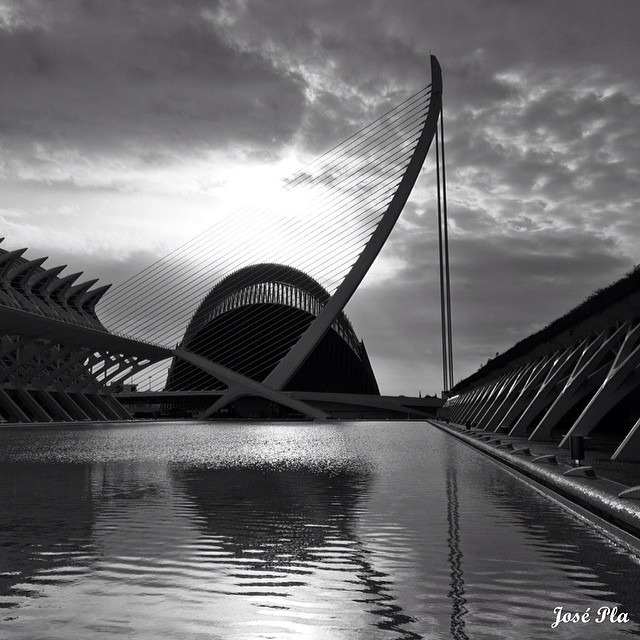 (formatgero) #ciudaddelasartesylasciencias #cac #valencia #vlc #calatrava #bn #bnw #nubes #agua #reflejos #contraluz #agora #spain #turismo