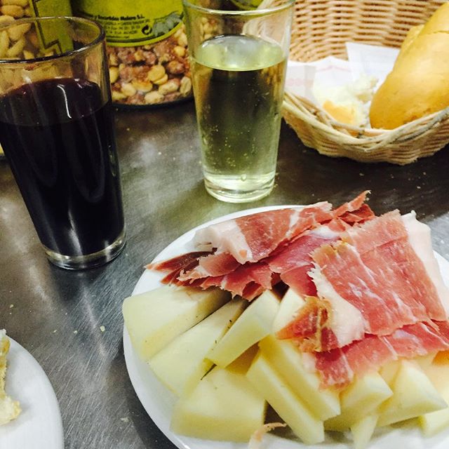 Jamon de serrano, queso y vino tindo! No puedo quierer algo de mas bueno! #valencia #textrañaba #comiendo #jabondeserrano #comidabuena #vlc #lovecomida #lovevalencia #disfrutandolascosasbuenasdelavida #bodegafila