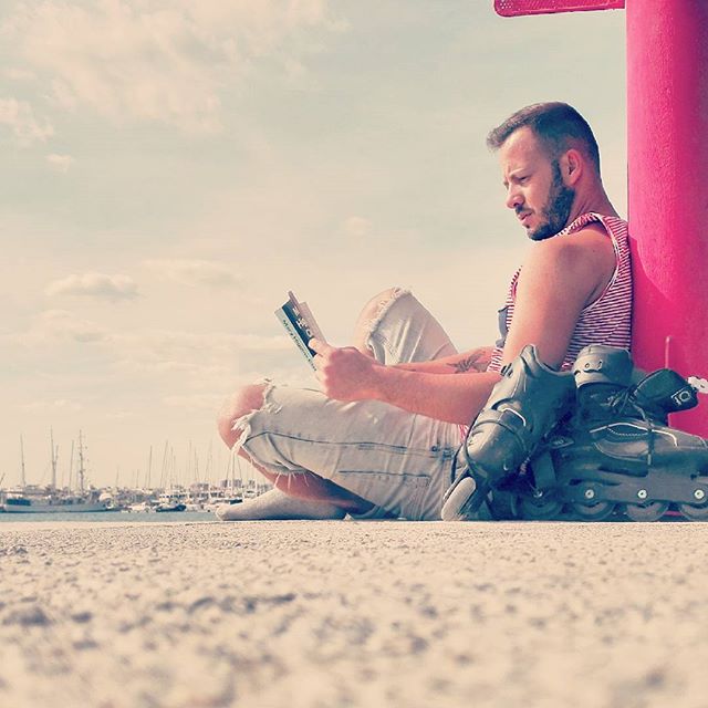 No se puede estar más agusto….. Relax después del trabajo #lovevalencia#puerto#patines#leeramansaalabestia#patinar#relax#sol#puertovalencia#valencia#welcomeotoño#calor#miercoles#lectura#diasinagobios#mar#lokuras#gay#instagay#boy#feliz#puertovlc#marinareal#veleros#esttamostanagustitooooo