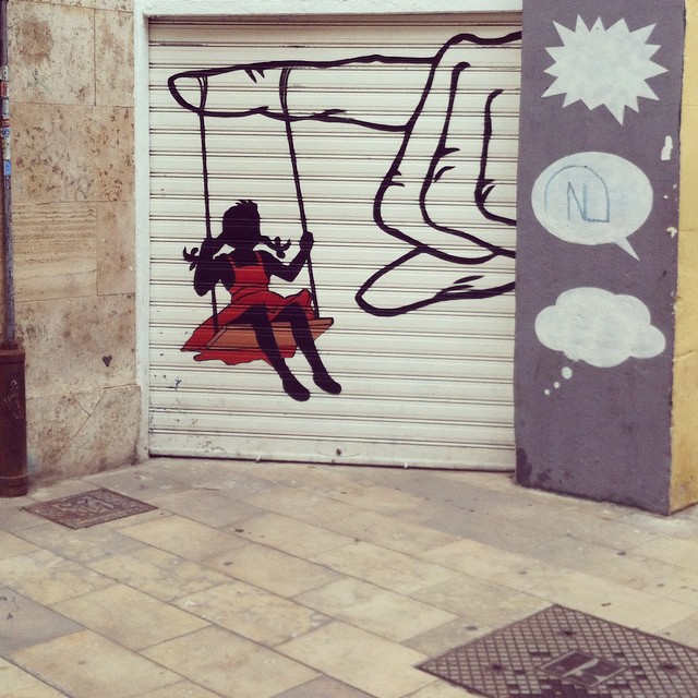 #valencia #espana #spagna #holiday #vacanze #bar #street #murales #bambina #altalena… (aura_barilani) #valencia #espana #spagna #holiday #vacanze #bar #street #murales #bambina #altalena #vestitorosso #beautiful #love #lovevalencia #nice #cool #happy #day