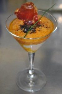 Tra i vari piatti senza glutine troviamo tra gli altri: l’insalata di bacalà con vinaigrette di mango; il gambero rosso di Gandía cucinato in acqua di mare; il riso cremoso al cavolfiore.