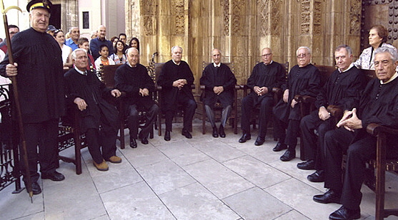 La corte è formata da otto contadini che indossano ancora la tipica blusa nera della gente di campagna, i quali sono eletti democraticamente ogni due anni dagli altri irrigatori. Seduti in circolo su poltrone di legno e cuoio risalenti al XVII secolo, sono investiti di una grande autorità.
