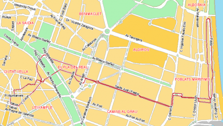 Línea Turística 32 La línea 32 de autobús te lleva desde el centro de Valencia hasta el Paseo Marítimo para un día de playa. La línea 32 de autobús te lleva desde Marqués de Sotelo hasta el Paseo Marítimo: Marqués de Sotelo-Plaza del Ayuntamiento-Pintor Sorolla-Amadeo de Saboya-Santos Justo y Pastor-Serrería-Mediterrània-Pavia-Paseo Marítimo. Desde el Paseo Marítimo hasta Marqués de Sotelo: Paseo Marítimo-Isabel de Villena-Eugenia Viñes-Mediterrània-Mercado del Cabanyal-Serreria-Santos Justo y Pastor-Amadeo de Saboya-Micer Mascó-General Palanca-Colón-Marqués de Sotelo. Frecuencia de paso: 8-10 minutos