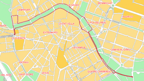 Línea Turística 95 La línea 95 recorre Valencia al margen del río Turia. Del Parque de Cabecera a la Ciudad de las Ciencias. Del Parque de Cabecera a la Ciudad de las Ciencias: Av. Manuel de Falla – Paseo Pechina – Guillém de Castro – Torres de Serrano – Pl. Poeta Llorente – Genral Palanca – Navarro Reverter – Pl. América – Av. Jacinto Benavente – Alcalde Reig – Autovía Saler. De la Ciudad de las Ciencias al Parque de Cabecera: Autovía Saler – Alcalde Reig – Paseo Alameda – San Pio V – Cronista Rivelles – Guadalaviar – Llano de Zaidía – Av. Menendez Pidal – Av. Tirso de Molina – Av. Manuel de Falla – Paseo Pechina. Frecuencia de paso: 9 -13 minutos