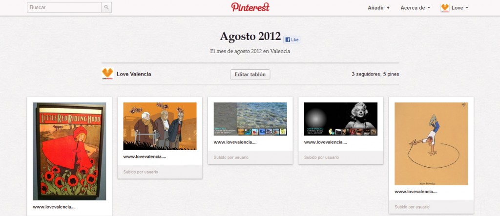 ¡Ya nos puesdes buscar en Pinterest! Allí encontrarás una forma más gráfica de saber qué está pasando en Valencia. Empezamos con el mes de agosto, haciendo algunas propuestas para que disfrutes del verano en la ciudad y fuera de ella. Por supuesto, también encontrarás fotos, ilustraciones e información sobre la cultura, paisajes y rincones de Valencia. Disfruta Love Valencia en Pinterest.