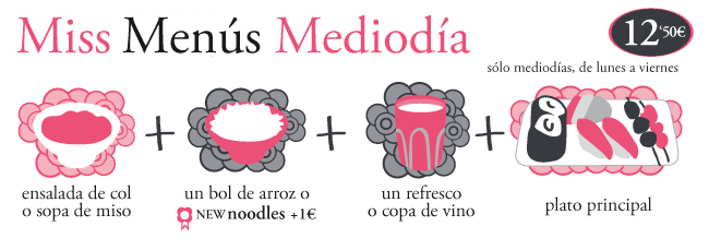 Miss Sushi Cánovas te invita a probar su menú de mediodía “Miss Menús Mediodía” con el que disfrutarás de una comida saludable y exquisita con el mejor sushi de la ciudad, por solo 12,50 €. Aprovecha esta opotunidad entre semana de lunes a viernes y date un capricho! Miss Sushi Cánovas dispone de servicio a domicilio y recogida en tienda, por si prefieres llevarte tu pedido a otra parte.