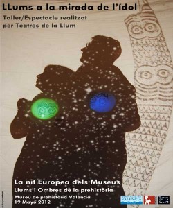 Noche Europea de los Museos 2012 Los museos también se pueden visitar por la noche en la Noche de los Museos de Valencia. La Noche Europea de los Museos fue creada en 2005 por el Ministerio de Cultura Francia. Hoy, el Consejo de Europa y la UNESCO apadrinan el festival. En 2011, más de 4.000 museos europeos de 40 países diferentes participaron. Programación de las Galerías y Salas de Arte Programación de los Museos Museo de Prehistoria de Valencia El sábado 19 de mayo de 2012 el museo abrirá desde las 22:00 hasta las 2:00 horas con un programa diferente: Luces y sombras de la Prehistoria. Una serie de piezas seleccionadas del Paleolítico a la Edad de los Metales permitirán a los visitantes acercarse al desarrollo del arte y a la importancia que éste tuvo para los grupos humanos que lo realizaron. Habrá diversos turnos entre las 22h y la 1h30. Los tickets se repartirán cuando entréis al museo. Las visitas están destinadas a todo el público. Exposiciones La Mirada del Ídolo: hasta el 20 de Mayo de 2012 Abrigo de Tortosillas. 100 Aniversario de su descubrimiento: hasta el 3 de Junio de 2012. MUVIM El MuVIM ha programado una amplia agenda de actividades para todo tipo de públicos. Tape Art, una de las formas de “street art” o arte de la calle. La Cinta adhesiva ha reemplazado al pincel y al spray y con su ayuda, artistas callejeros decoran la ciudad creando algo nuevo y diferente. Taller infantil : Mi obra de arte ( a las 18h.) Con esta actividad se pretende desarrollar la capacidad de comprensión del arte contemporáneo por parte de los niños. El taller, además, tiene como objetivo que cada asistente realice un trabajo artístico. Visitas guiadas especiales entre las 18 y las 20h. a las exposiciones: Schmuck 2012 Sent i respira Valencià Un juego mágico La luz de la selva amazónica A las 19h. La pinacoteca de radio se traslada al MuVIM donde realizará la grabación de su programa radiofónico de difusión cultural a cargo de Alejandro Álvarez F. y Jordi Coll M. A las 20h. Inauguración de la exposición fotográfica Landscapes en Cafetería Vintage Y a las 21.30h. The Go! Freaks en concierto L’ iber, Museo de los soldaditos de plomo Jornada de puertas abiertas de 11 a 19:30 horas. (cerrado de 14 a 16 horas). 12 horas: Taller infantil “Detective en el museo” 19 horas: Entrega de premios del III Concurso de Relato Corto 22:30 horas hasta las 01:00 am. Puertas abiertas 23 horas: Concierto de música celta con Samaín y después recordaremos a los Beatles con Nowhereman. Vino de honor. Museo Nacional de Cerámica 20:00 horas Recital de Cuerda. En la Sala Pinazo, I planta. Entradas hasta completar aforo.
