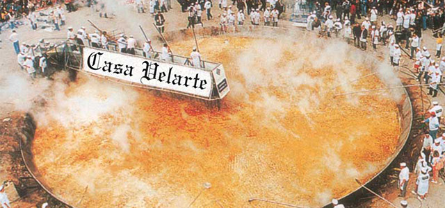 Paellas gigantes en Valencia Las mejores paellas gigantes en Valencia con la receta tradicional valenciana Tanto a nivel nacional como internacional, la capital del Turia es de sobra conocida por su plato estrella: la Paella. Esta fama es gracias a que en Valencia existe una gran tradición entorno a la elaboración de la paella, siguiendo fieles a la receta tradicional valenciana. Paellasgigantesvalencia.com continua realizando paellas como se ha hecho toda la vida: a leña y siguiendo la receta de siempre. Paellasgigantesvalencia.com forma parte de la Casa Velarte, que cuenta con más de 100 años de experiencia en la elaboración de paellas gigantes en Valencia. Su especialización en la realización de catering para eventos multitudinarios y realización de paellas gigantes, convierten a Paellasgigantesvalencia.com en una empresa de confianza. Además, en Paellas Velarte la paella “no es arroz con cosas” y no reinventan la receta tradicional valenciana, saben que seguir el estilo y receta de toda la vida da como resultado paellas valencianas de calidad y con el mejor sabor. El espíritu de superación y su pasión por la paella tradicional de la Casa Velarte hizo que en 8 de Marzo de 1992 Paellas Velarte consiguiera el Record Guinness a la Paella más Grande del Mundo. Cocinaron una paella gigante de 1’70 metros de altura, 20 metros de diámetro, 30 toneladas de peso, 209. 000 litros de capacidad y se dio de comer a las más de 100.000 personas que se congregaron para no perderse el acontecimiento. Paellasgigantesvalencia.com realizan catering de paellas gigantes en Valencia por encargo. Para más información y presupuesto, te puedes poner en contacto a través del teléfono al 96 374 31 11 o rellenando el formulario de contacto. Paellasgigantesvalencia.com te asesorarán en todo lo que necesites.