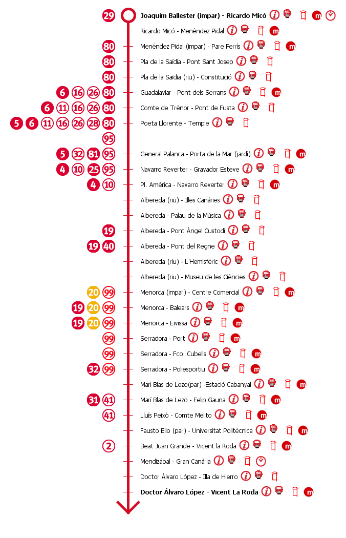 Esquema Paradas Línea 1 EMT Valencia