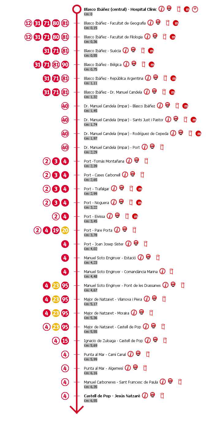 Esquema Paradas Línea 30 EMT Valencia