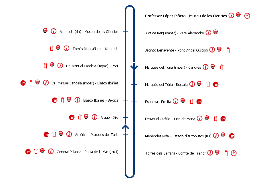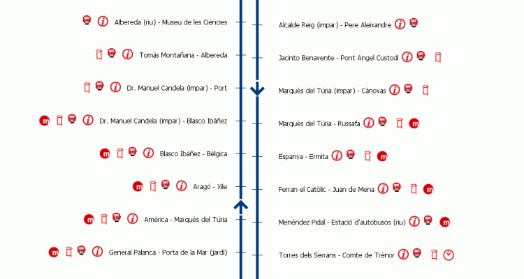 Esquema Paradas Línea Correnit EMT Valencia Esquema Paradas Línea Correnit EMT Ver todas las líneas de la EMT