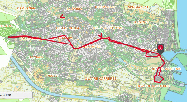 Línea 3 autobuses Valencia Linea 3 VER AQUI PLANO PARADAS L3>> VER AQUI HORARIOS PARADAS L3>> Esta línea de autobús sale de Avda. del Cid y te permite ir al Parque de Cabecera. Podrás visitar la Plaza de toros, el Mercado de Colón, Puente de Aragón y la Plaza América. Todos sitios importantes de la ciudad y con un gran valor turístico por la arquitectura. Te lleva al Puerto, donde podrás ver el Circuito de fórmula 1 o barrios de pescadores, como Nazaret o la Punta, y la lonja donde podrás ver la compra-venta del pescado fresco. Si buscas un centro comercial, el Aqua te queda cerca con esta línea de autobuses. Ver todas las líneas de la EMT