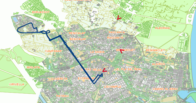Recorrido Línea N3 EMT Valencia Recorrido Línea N3 EMT Pl. de l'Ajuntament, Ferran el Católic, Benimàment. Ver todas las líneas de la EMT
