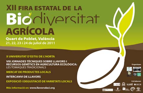 Programación de la XII Feria de la Biodiversidad Agrícola 2011 Esta es la programación de la XII Feria de la Biodiversidad Agrícola 2011. Ya puedes consultar la programación de la XII Feria de la Biodiversidad Agrícola 2011: Divendres / Viernes, 22 de julio 10.30 h Inscripcions a les JT sobre Tomaques Tradicionals / Inscripciones a las JT sobre Tomates Tradicionales. 11 a 12 h El cultiu ecològic de la tomaca / El cultivo ecológico del tomate. Josep Roselló, Llavors d’ací. 12 a 13 h Caracterització de varietats de tomaques / Caracterización de variedades de tomates. Alberto Llopís, Llavors d’ací. 13 a 14 h Degustació de varietats tradicionals de tomaques / Degustación de variedades tradicionales de tomates. Ignacio Landerer, Asociación Albar. 14 h Dinar ecològic / Comida ecológica. 17 a 18.30 h La qualitat dels aliments ecològics i de les varietats tradicionals / La calidad de los alimentos ecológicos y de las variedades tradicionales. Mª Dolores Raigón, SEAE. Taller de creativitat per a l’ACCIÓ / Taller de creatividad para la ACCIÓN. Universitat d’Estiu De L’horta. 19:00 a 20.30 h A/ Taula redona: Estat de les varietats locals al País Valencià / Mesa redonda: Estado de las variedades locales en el País Valenciano. Llavors d’ací, IVIA, COMAV, La Unió y As. Albar. B/ Xerrada sobre Sobirania Alimentaria / Charla Soberanía alimentaria. Plataforma SOBAL. Dissabte / Sábado 23 de julio Desde las 10.30 a 21.00 h Exposició de varietats locals de les xarxes locals de llavors de diferents llocs de l’Estat espanyol i zona d’intercanvi de llavors / Exposición de variedades locales de las redes locales de semillas de diferentes lugares del Estado español y zona de intercambio de semillas. El Parque 10.30 a 12.00 h A/ Tallers pràctics simultanis / Talleres prácticos simultáneos: ‐ Multiplicació i extracció de llavors / Multiplicación y extracción de semillas. Ester Casas, Les Refardes‐Xarxa Catalana de Graners y Manolo Zapata. ‐ Xarxes d’Intercanvi i Ressembra / Redes de Intercambio y Resiembra. Centro Zahoz y Edgar Martínez, Rede Galega de Sementes. B/ Metodologia de cates dirigides i maridatge amb oli ecològic / Metodología de catas dirigidas y maridaje con aceite ecológico. Mª José Payá, SEAE. 12 a 14 h. La importància de la conservació de les varietats locals, el perill de les pèrdues de biodiversitat i la erosió genètica / La importancia de la conservación de variedades locales, el peligro de las pérdidas de biodiversidad y la erosión genética. Jose Esquinas, Director de la Cátedra de Estudios de Hambre y Pobreza (CEHAP) en la Universidad de Córdoba. 14.30 a 17 h Dinar ecològic amb varietats locals / Comida ecológica con variedades locales. La pinaeta. 17 a 18.30 h Taules redones simultanis / Mesas redondas simultáneas: ‐ Legislació, us i accés a les varietats locals / Legislación, uso y acceso a las variedades locales. Juanma González,Red Andaluza de Semillas; María Carrascosa, Red de Semillas – Comité de expertos de semillas del Grupo IFOAM EU; Víctor García, Triticatum; Laura Manjavacas, Viverista. ‐ Presentació d’iniciatives de conservació de llavors al País Valencià / Presentación de iniciativas de conservación de semillas del País Valenciano. Llavors d’ací, Hortsostenible, AiguaClara, SlowFood Valencia, Mas de Noguera, Terratremol‐Macondo. 19 a 20.30 h Viure de la terra: Trobada d’agricultors savis / Vivir de la tierra: Encuentro de agricultores sabios. Diumenge / Domingo 24 de julio 10.30 a 13.30 h El Parque. Exposició de varietats locals de les xarxes locals de llavors de diferents llocs de l’Estat espanyol / Exposición de variedades locales de las redes locales de semillas de diferentes lugares del Estado español. El Parque Intercanvi de llavors tradicionals / Intercambio de semillas tradicionales. El Parque Mercat de productors locals amb una interessant mostra de varietats tradicionals / Mercado de productores locales con una interesante muestra de variedades tradicionales. El Parque Tallers pràctics simultanis / Talleres prácticos simultáneos: CP Laporta ‐ Els cereals i l’elaboració de pa / Los cereales y la elaboración de pan. Victor García, Triticatum; ‐ Elaboració de vermicompost a casa / Elaboración de vermicompost en casa. Fernando y Silvia; ‐ Elaboració de veles de cera / Elaboración de velas de cera. Carlos 12.30 a 13.30 h Degustació de varietats tradicionals / Degustación de variedades tradicionales. El Parque 13.30 h Declaració final de la XII Fira Estatal de la Biodiversitat Agrícola / Declaración final de la XII Feria de la Biodiversidad Agrícola y Clausura. El Parque