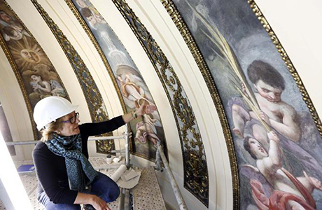 Descubriendo los colores del camarín de la Basílica de la Vírgen La restauración del camarín de la Basílica de la Virgen devuelve el color a sus murales