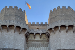 Torres de Serranos Las Torres de Serranos se encuentran en la Plaza de Los Fueros, junto al cauce del antiguo Río Turia
