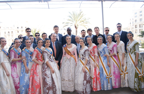 Los jugadores del Valencia Basket en la mascletà Aquí os dejamos con la foto de los jugadores del Valencia Basket en su visita al balcón del Ayuntamiento para disfrutar de la mascletà.