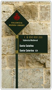 València Museu Obert Valencia Museu Obert es un museo al aire libre. A través del móvil recibirás toda la información del monumento que quieras. Si vas paseando por la ciudad y te encuentras en algún edificio un cartel verde con la inscripción “Valencia Museu Obert“. En ella, figura un número de teléfono móvil. Debajo del cartel, a la derecha del nombre del monumento, verás un número de tres cifras. Lo que debes hacer es marcar en tu móvil el número 650 800 200, y cuando recibas respuesta marcas el número de tres cifras. Con este sistema escucharás toda la información importante sobre el monumento que estás contemplando. Los números de los monumentos son: Almudín : 121 Antiguo Hospital General (Biblioteca Pública de Valencia) : 142 Asilo de la Lactancia : 216 Asilo de San Juan de Dios : 219 Asilo del Marqués de Campo : 178 Ayuntamiento : 194 Baños árabes del Almirante : 122 Basílica de la Virgen de los Desamparados : 149 Casa de los Dragones : 212 Casa del Punt de Gantxo : 191 Casa Ordeig : 192 Casa Vestuario : 164 Casa-Museo de Blasco Ibáñez : 239 Casa-Museo José Benlliure : 182 Colegio de las Escuelas Pías : 166 Colegio del Arte Mayor de la Seda : 167 Convento de la Trinidad : 132 Convento de Santo Domingo : 133 Cripta Arqueológica de la Cárcel de San Vicente Mártir : 111 Edificio Alonso : 222 Estación del Norte : 196 Estación del Puente de Madera : 218 Estación Marítima, Tinglados y Grúas del Puerto : 236 Fábrica de Tabacos : 215 Finca Roja : 224 Galería del Tossal : 114 Iglesia de los Santos Juanes : 147 Iglesia de San Esteban : 151 Iglesia de San Juan de la Cruz : 154 Iglesia de San Juan del Hospital : 123 Iglesia de San Martín : 163 Iglesia de San Nicolás : 146 Iglesia de Santo Tomás y San Felipe Neri : 152 Iglesia del Carmen : 143 Iglesia y Torre de Santa Catalina : 124 IVAM – Instituto Valenciano de Arte Moderno – Centro Julio González : 231 Jardín Botánico : 168 Jardines de Ayora : 221 Jardines de Monforte : 217 La Almoina : 112 La Catedral : 118 La Ciudad de las Artes y las Ciencias : 234 Lonja de la Seda : 125 Mercado Central : 193 Mercado de Colón : 199 Monasterio de San Miguel de los Reyes (Biblioteca Valenciana) : 141 Museo Casa de las Rocas : 144 Museo de Bellas Artes San Pío V : 169 Museo de Historia de la Medicina : 225 Museo de la Ciudad (Palacio de Berbedel) : 177 Museo de Prehistoria y de las Culturas de Valencia (La Beneficencia) : 179 Museo del Palacio de Cervelló : 157 Museo del Patriarca : 135 Museo Nacional de Cerámica González Martí – Palacio del Marqués de Dos Aguas : 161 Museo Taurino – Plaza de Toros : 186 MUVIM – Museo Valenciano de la Ilustración y la Modernidad : 237 Palacio de Benicarló : 131 Palacio de Congresos : 235 Palacio de Justicia : 158 Palacio de la Exposición : 214 Palacio de la Generalitat : 137 Palacio de los Alpuente : 145 Palacio de los Boïl de Arenós : 162 Palacio de los Condes de Peñalba : 159 Palacio de los Pescara : 174 Palacio de los Valeriola : 153 Palacio de Pineda : 165 Palacio del Almirante : 122 Palacio e Iglesia del Temple : 156 Palau de la Música : 233 Plaza Redonda : 176 Portada del Palacio de los Duques de Mandas : 139 Portal de Valldigna : 127 Puente de la Exposición : 232 Puente de la Trinidad : 132 Puerta de los Judíos : 134 Reales Atarazanas : 245 Rectorado de la Universidad de Valencia : 226 Salón de Racionistas : 183 Teatro Principal : 175 Torre del Ángel : 113 Torres de los Guardas de la Alameda : 171 Torres de Quart : 129 Torres de Serranos : 115
