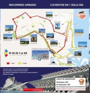 VI Marcha Ciclista Ciudad de Valencia 2011 El 13 de noviembre se celebra la Marcha Ciclista a la Ciudad de Valencia. El 13 de noviembre se celebrará en Valencia la VI Marcha Ciclista Ciudad de Valencia 2011 que además este año se celebra conjuntamente con el XXII Criterium Internacional de Ciclismo de la Comunidad Valenciana. El recorrido de la marcha serán 42 kilómetros que se realizarán dando 2 vueltas a la ciudad de Valencia. La cita de salida es a las 09:00 horas en la Ciudad de las Artes y las Ciencias y el recorrido pasará por la Malvarrosa, el Puerto, el Bioparc y el Parque de Cabecera, las Torres de Serranos, el Palau de la Música y la Alameda. Las inscripciones se pueden realizar en tiendas delegadas como las de Do you Bike o en la web de CDPodium o a través de La Caixa. El precio de las inscripciones para este año: Federados: 30 € No Federados: 35 € Más 5 € de fianza por el chip, que serán devueltos a la entrega del mismo a la finalización de la marcha. Con la inscripción antes del 15 de octubre de 2011 te regalan un maillot. El precio de la inscripción incluye avituallamiento, diploma, seguro médico y masaje. La prueba está abierta a todo el público mayor de 17 años. Durante la prueba habrá personal sanitario, policía, fisioterapeutas, parking de bicicletas y servicio fotográfico, entre otros. Recorrido